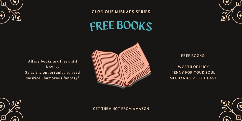 It’s that time of the year that nights grow dark and days cold, and my books are free. Worth of Luck, Penny for Your Soul, and the newest one, Mechanics of the Past, are free until midnight November 14. They all can be read independently and may include pondering about human nature and how silly we can be. They are available at Amazon and free at your local site.