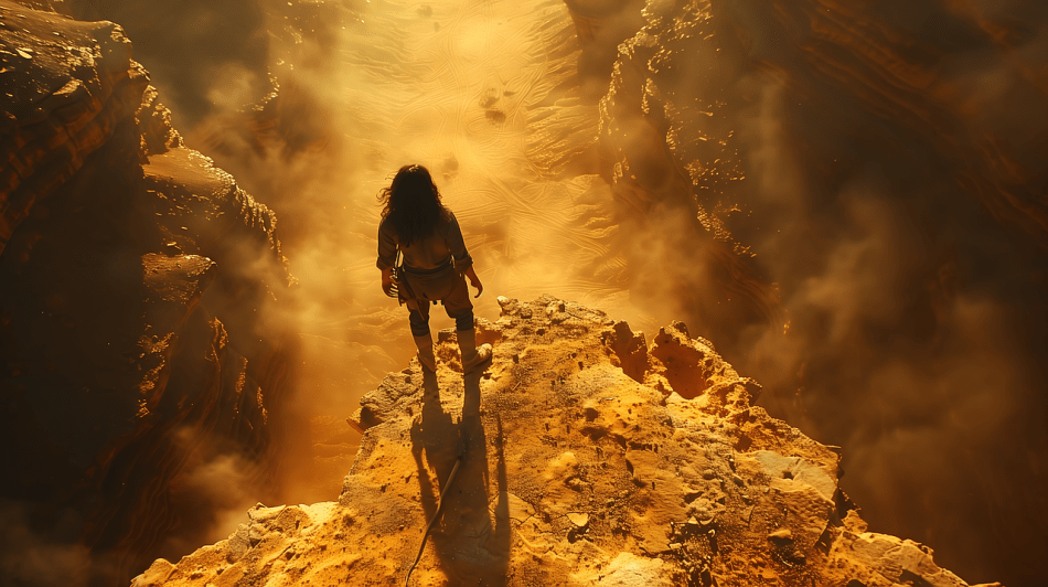 The huge gap between the mountain tops divided the landscape into two rifts. It was a certain drop to death if she made even one mistake when crossing it with her makeshift bridge. She had been building it for a few days now, having lost her rope and other gear. Underneath her, the world had gone to hell. The creatures had suddenly appeared, killing everyone in sight. She had run to the mountains. The terrain she knew well. But a few days later, one of those creatures had followed her and almost killed her.