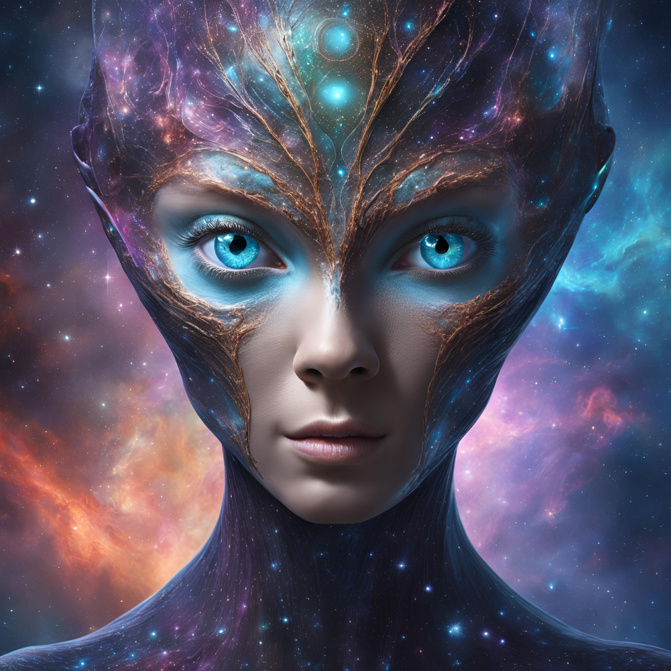 He sat there, his head whirling. Something had dropped from the starry sky, knocking him to the ground. The worst thing was that there seemed to be a tall, humanoid figure cloaked in a lucid, fabric-like garment, shielding its bluish skin. She looked like she was a she, and she appeared highly concerned. His hallucinations were clearly becoming vivid.